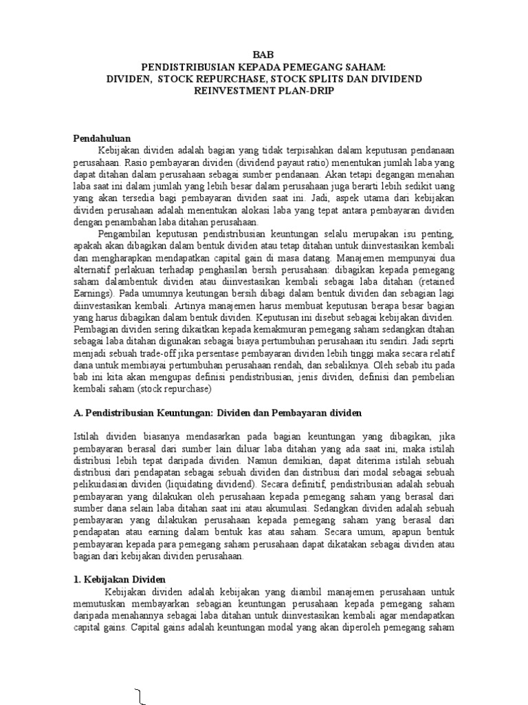 Jurnal saintifik manajemen dan akuntansi page 8 of 14 vol. Investor sangat berkepentingan dengan kebijakan dividen serta kebiasaan perseroan membagikan dividen. Modal saham lama diubah atau ditukar dengan saham baru yang nilai nominalnya rp 1.200 per lembar.
