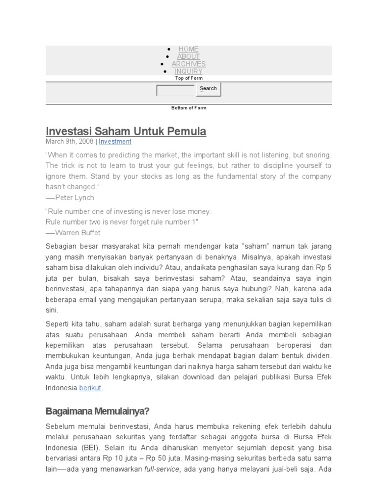 Maka tak heran kalau semakin banyak saja dari anda yang penasaran bagaimana cara untuk bisa terjun dalam. Bisa saja return saham dilakukan nkarena telah habis masa kontrak kerja sama dan tidak dilakukan perpanjangan atau masalah lainnya, seperti terjadinya likuidasi pada perusahaan.
