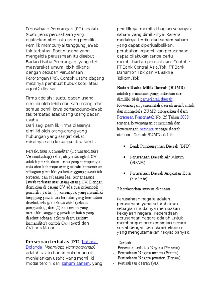 Perusahaan semacam ini disebut juga perseroan atau pt. Perusahaan daerah selanjutnya disingkat pd.