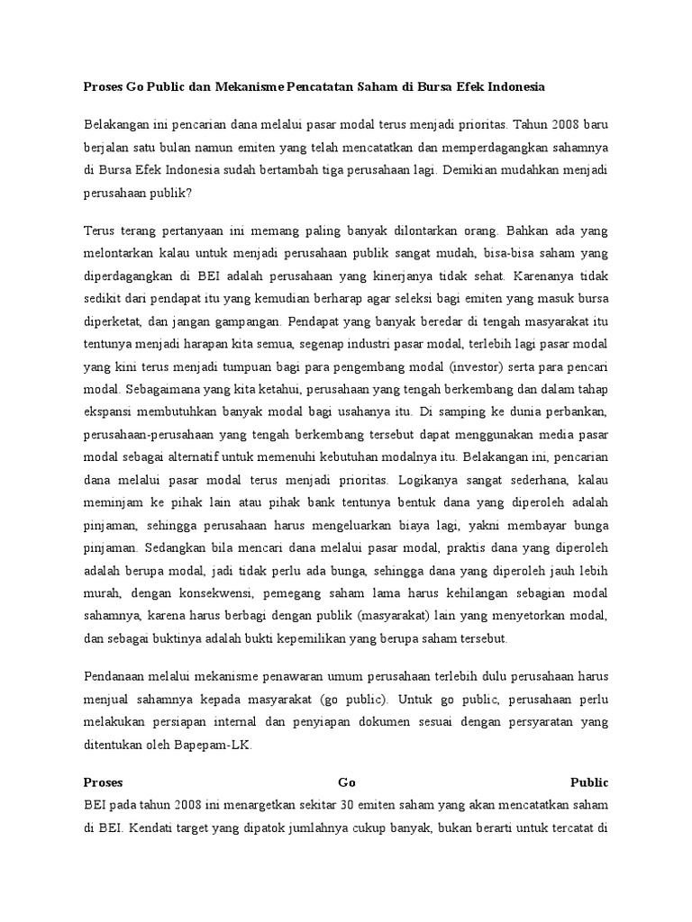 Proses Go Public Dan Mekanisme Pencatatan Saham Di Bursa